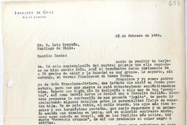 [Carta] 1954 febrero 23, Río de Janeiro, Brasil [a] Luis Oyarzún [manuscrito] Juan José Fernández.