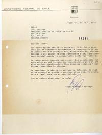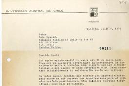 [Carta] 1970 julio 7, Valdivia, Chile [a] Luis Oyarzún, New York [manuscrito] William Thayer Arteaga.