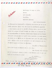 [Carta] 1972 mayo 4, Santiago, Chile [a] Luis Oyarzún [manuscrito] Gustavo Bartolini.