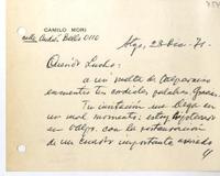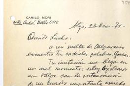 [Tarjeta] 1971 diciembre 23, Santiago, Chile [a] Luis Oyarzún [manuscrito] Camilo Mori.