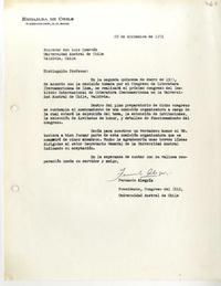 Le solicita que forme parte de la comisión organizadora del Congreso Internacional de Literatura Iberoamericana que se realizará en la Universidad Austral de Chile en Valdivia.