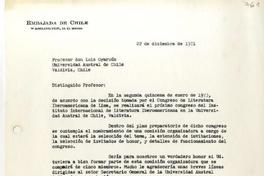 [Carta] 1971 diciembre 22, Washington D.C. [a] Luis Oyarzún, Valdivia, Chile [manuscrito] / Fernando Alegría. 1 hoja ; 28 x 21,7 cm. .