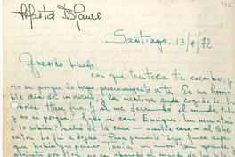 [Carta] 1972 agosto 13, Santiago, Chile [a] Luis Oyarzún [manuscrito] Marta Blanco.