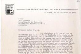 [Carta] 1972 noviembre 15, Valdivia, Chile [a] Luis Oyarzún [manuscrito] Peter Weinberger P.