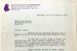 [Carta] 1971 diciembre 31, Santiago, Chile [a] Luis Oyarzún [manuscrito] María Eugenia Zamudio.