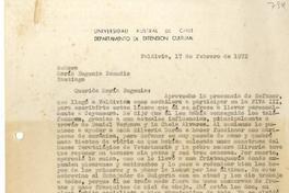 [Carta] 1972 febrero 17, Valdivia, Chile [a] María Eugenia Zamudio [manuscrito] Luis Oyarzún.