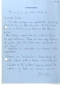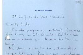 [Carta] 1970 julio 25, Madrid, España [a] Luis Oyarzún [manuscrito] Claudio Bravo.