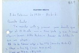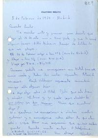 [Carta] 1970 febrero 5, Madrid, España [a] Luis Oyarzún [manuscrito] Claudio Bravo.