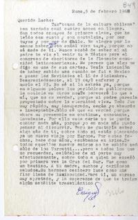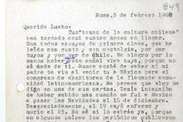 [Carta] 1968 febrero 3, Roma, Italia [a] Luis Oyarzún [manuscrito] Enrique Bello.