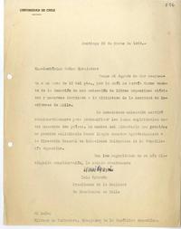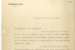 Agradece la donación de una colección de libros argentinos clásicos y modernos, destinada a la Biblioteca de la Sociedad de Escritores de Chile.