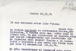 [Carta] 1974 noviembre 20, España, Madrid [a] Luis Vargas Saavedra, Santiago, Chile [manuscrito] Luis Vargas Saavedra