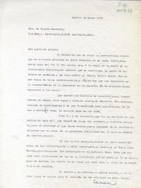 Comenta acerca de su correspondencia con Gabriela Mistral. Agradece que revise dos artículos para ella, se siente agradecida que un profesor que estima, pueda ocuparse en relación con su obra. Comunica que irá a México al "Homenaje del poeta León Felipe".