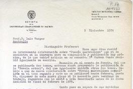 [Carta] 1974 diciembre 9, España, Madrid [a] Luis Vargas Saavedra, Australia [manuscrito] Luis Vargas Saavedra.