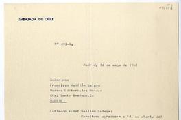 Madrid, España [a] Francisco Guillén Salaya Carta, 1961 mayo 24, [manuscrito] Sergio Fernández Larraín.