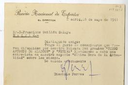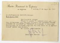 Madrid, España [a] Francisco Guillén Salaya Tarjeta, 1961 mayo 18, [manuscrito] Dionisio Porres Gil.