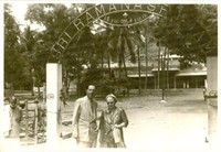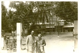 Juan Marin junto a una mujer no identificada en la entrada de Sri Ramanasramam, hogar del maestro Adainita Vedanta Maharshi.