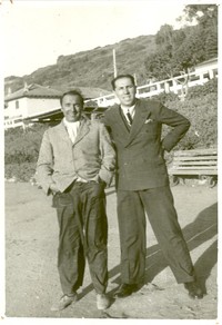 Juan Marín junto a Pablo Neruda en Concón el 2 de enero de 1938.