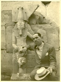 [Juan Marín en Egipto] [fotografía]. [Luxor, Egipto] : [Editor no identificado] ; 30 diciembre de 1947. 1 fotografía : Mmonocromo en blanco y negro, 17 x 23,5 cm. .