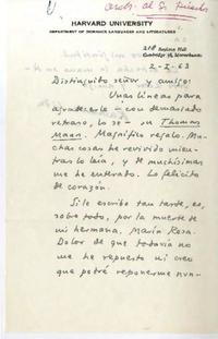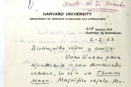 Hológrafo a tinta, firmado. Con membrete "Harvard University".