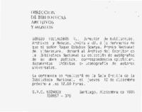 1 invitación ; Archivo del Escritor Biblioteca Nacional, Avenida Libertador Bernardo O'Higgins, Santiago, Chile.
