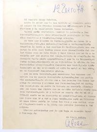 Santiago, Chile [a] Roque Esteban Scarpa carta, 1974 enero 12, [manuscrito] Hernán Díaz Arrieta.