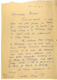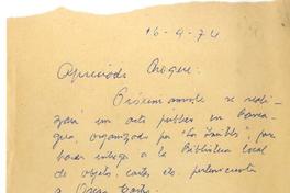 Rancagua, Chile [a] Roque Esteban Scarpa, Santiago carta, 1974 septiembre 16, [manuscrito] Gonzalo Drago.