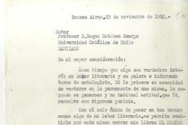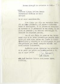 Buenos Aires, Argentina [a] Roque Esteban Scarpa, Chile carta, 1955 noviembre 22, [manuscrito] / León Benarós. 1 hoja ; 25,5 x 18,5 cm. .