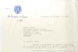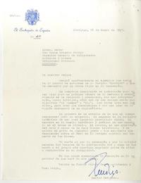 Texto original mecanografiado, firmado. Con membrete "El Embajador de España".