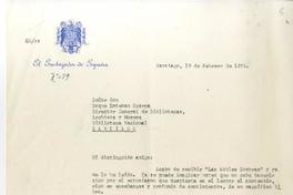 Texto original mecanografiado, firmado. Con membrete "El Embajador de España".
