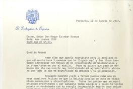 Santiago, Chile [a] Roque Esteban Scarpa carta, 1977 agosto 12, [manuscrito] Emilio Beladiez.