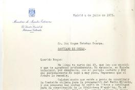 Madrid, España [a] Roque Esteban Scarpa Carta, 1975 julio 4, [manuscrito] José Luis Messía y Jiménez.