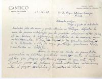 Hológrafo a tinta, firmado. Con membrete "CÁNTICO hojas de poesía"