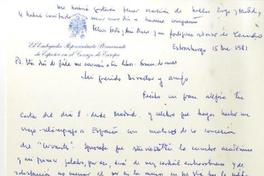 Estraburgo, Francia [a] Roque Esteban Scarpa Tarjeta, 1981 diciembre 15, [manuscrito] Nuño Aguirre de Cárcer.
