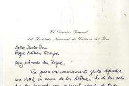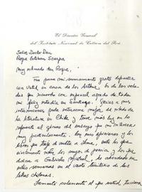 Agradece a Scarpa sus atenciones cuando estuvo en Chile, y lo invita a dictar una conferencia en el Salón de honor del Instituto Nacional de Cultura del Perú.