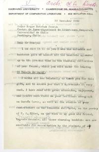 Massachusetts [a] Roque Esteban Scarpa Carta, 1962 diciembre 29, [manuscrito]. Renato Poggioli.