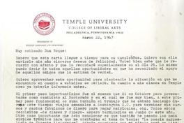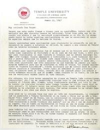Con membrete "Temple University College of Liberal Arts".