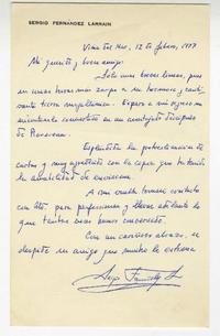 Viña del Mar, Chile [a] Roque Esteban Scarpa Carta, 1977 febrero 12, [manuscrito] / Sergio Fernández Larraín. 1 hoja ; 21,5 x 13 cm. .