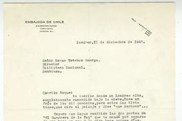 Londres, Inglaterra [a] Roque Esteban Scarpa Carta, 1967 diciembre 2, [manuscrito] / Fernando Debesa. 1 hoja ; 22,5 x 20,5 cm. .