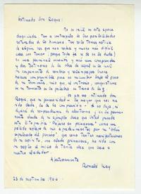 Santiago, Chile [a] Roque Esteban Scarpa Carta, 1966 septiembre 23, [manuscrito] / Ronald Kay. 1 hoja ; 21 x 15 cm. .