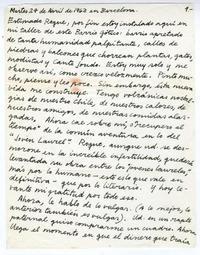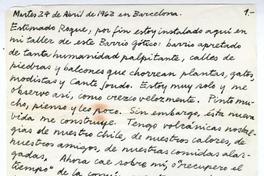 Barcelona, España [a] Roque Esteban Scarpa carta, 1962 abril 24, [manuscrito] Juan Downey.