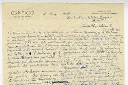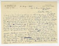 Hológrafo a tinta, firmado. Con membrete "Cántico".