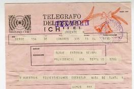 Texto original mecanografiado, firmado. Con timbre "Telégrafo del Estado de Chile".