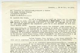 Linares, Chile [a] Roque Esteban Scarpa Carta, 1976 diciembre 28, [manuscrito] / Pedro Olmos. 1 hoja ; 21,5 x 27 cm. .
