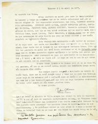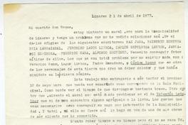 Linares, Chile [a] Roque Esteban Scarpa Carta, 1977 abril 21, [manuscrito] Pedro Olmos.