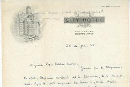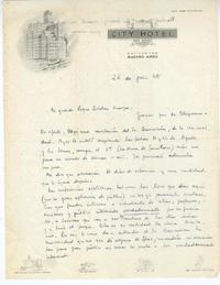 Hológrafo a tinta, firmado. Con membrete "City Hotel".