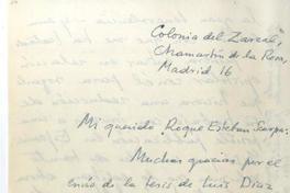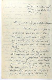 Madrid, España [a] Roque Esteban Scarpa Carta, 1951 febrero 6, [manuscrito] / Dámaso Alonso 1 hoja ; 21,5 x 15 cm. .