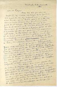 Madrid, España [a] Roque Esteban Scarpa Carta, 1951 junio 2, [manuscrito] / Miguel Arteche. 1 hoja ; 32,5 x 21,5 cm. .