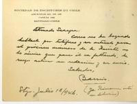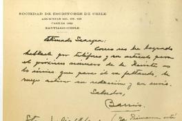 Santiago, Chile [a] Roque Esteban Scarpa Tarjeta, 1946 julio 18, [manuscrito] Eduardo Barrios.