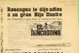 Recortes de prensa : "Ecos del homenaje al poeta" / El Rancaguino, 9 de junio 1945 -- "Oscar Castro recibió homenaje póstumo" / El Rancaguino, 7 de junio 1948 -- "Soneto del mal Tahur" / La verdad, 14 de enero 1948 -- "Murió el poeta Oscar castro Z." / 3 de noviembre 1947 -- "Rancagua le dijo adios a su gran hijo ilustre" / El Rancaguino, 2 de noviembre 1947 -- "Rancagua y su poeta" / El Rancaguino, 4 de noviembre 1947 -- "Rancagua honrorará a sus muertos" / Crítica, 1 de noviembre 1951 -- "Adios retorno de Oscar Castro a España" / El Mercurio, 20 de mayo de 1951 -- "Oscar Castro y la lealtad a Los Inútiles" / El Rancaguino, 1967 -- "Recordando la triste despedida" / El Rancaguino, 2 de noviembre 1972 -- "Cierra Ivelda los ojos..." -- "Oscar Castro 25 años después" /El Mercurio, 12 de noviembre 1972.