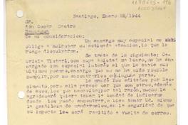 Santiago, Chile [a] Oscar Castro, Rancagua Tarjeta, 1944 enero 25, [manuscrito] Zacarías Gómez Delgado.